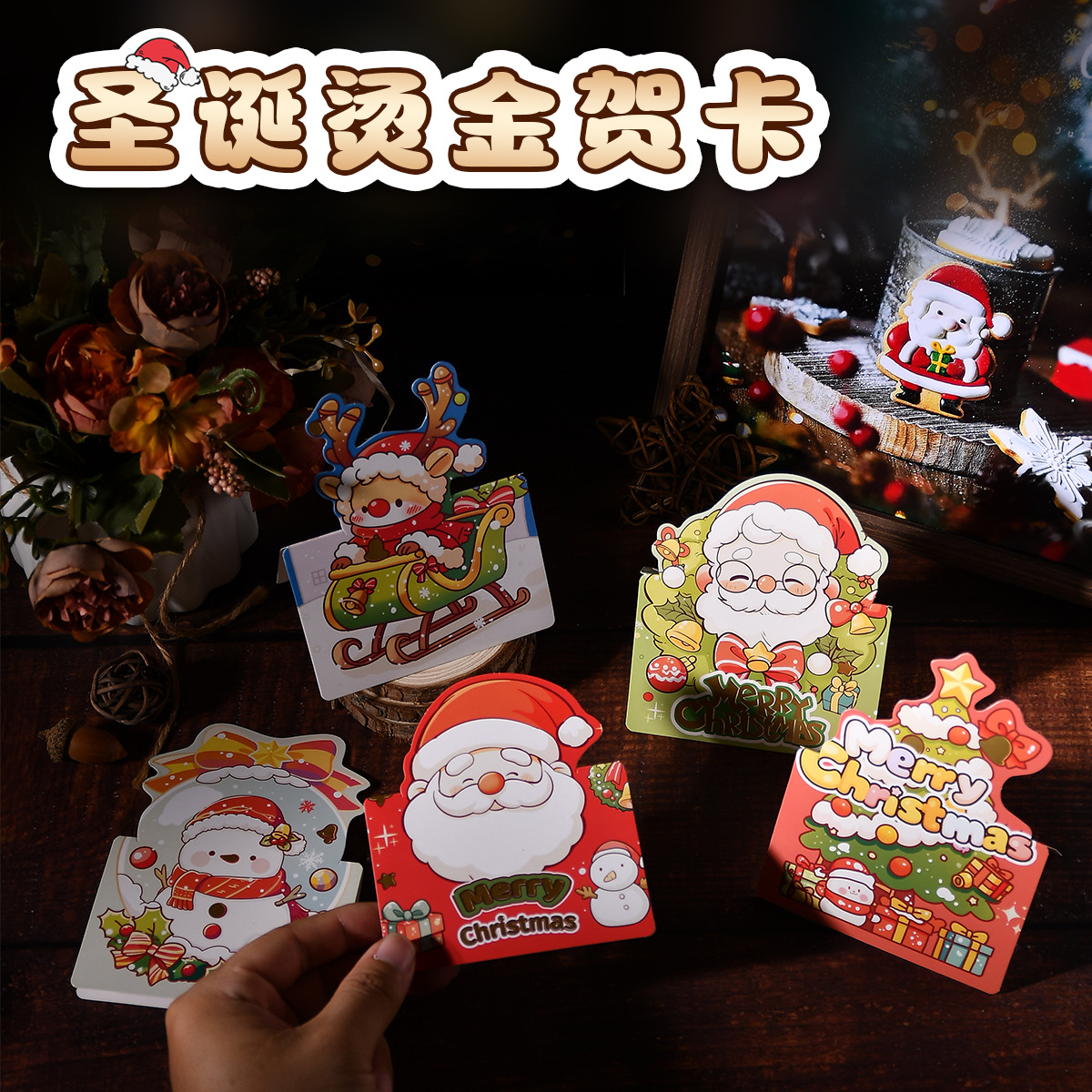 クリスマス立体グリーティングカード平安夜手書き祝福箔押しカード花屋焙煎プレゼント折り畳みカード