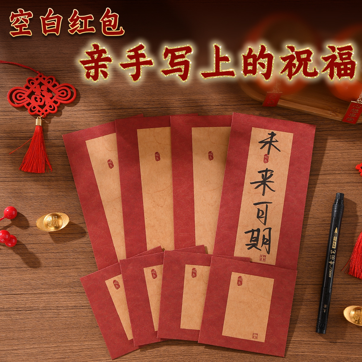 字のない空白の赤い包みの手書きの書道の題字は結婚の赤い包みの誕生日の満月のお年玉の新年の利益を祝福します。