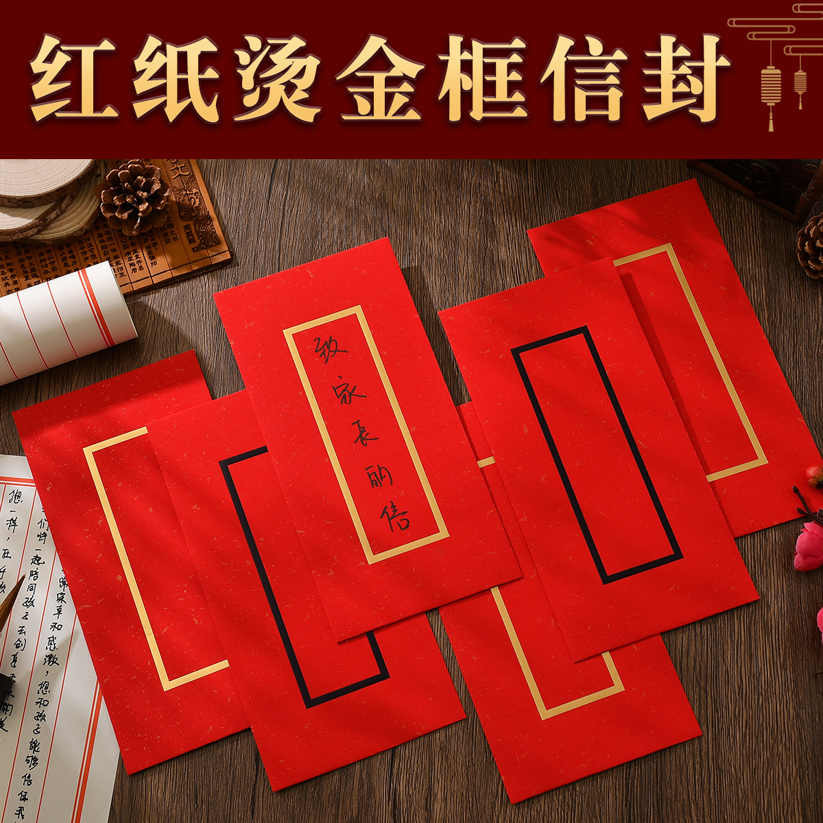 中国紅箔押し枠封筒中国式古風便箋封筒ロマンチックな儀式感個性復古喜帖便箋