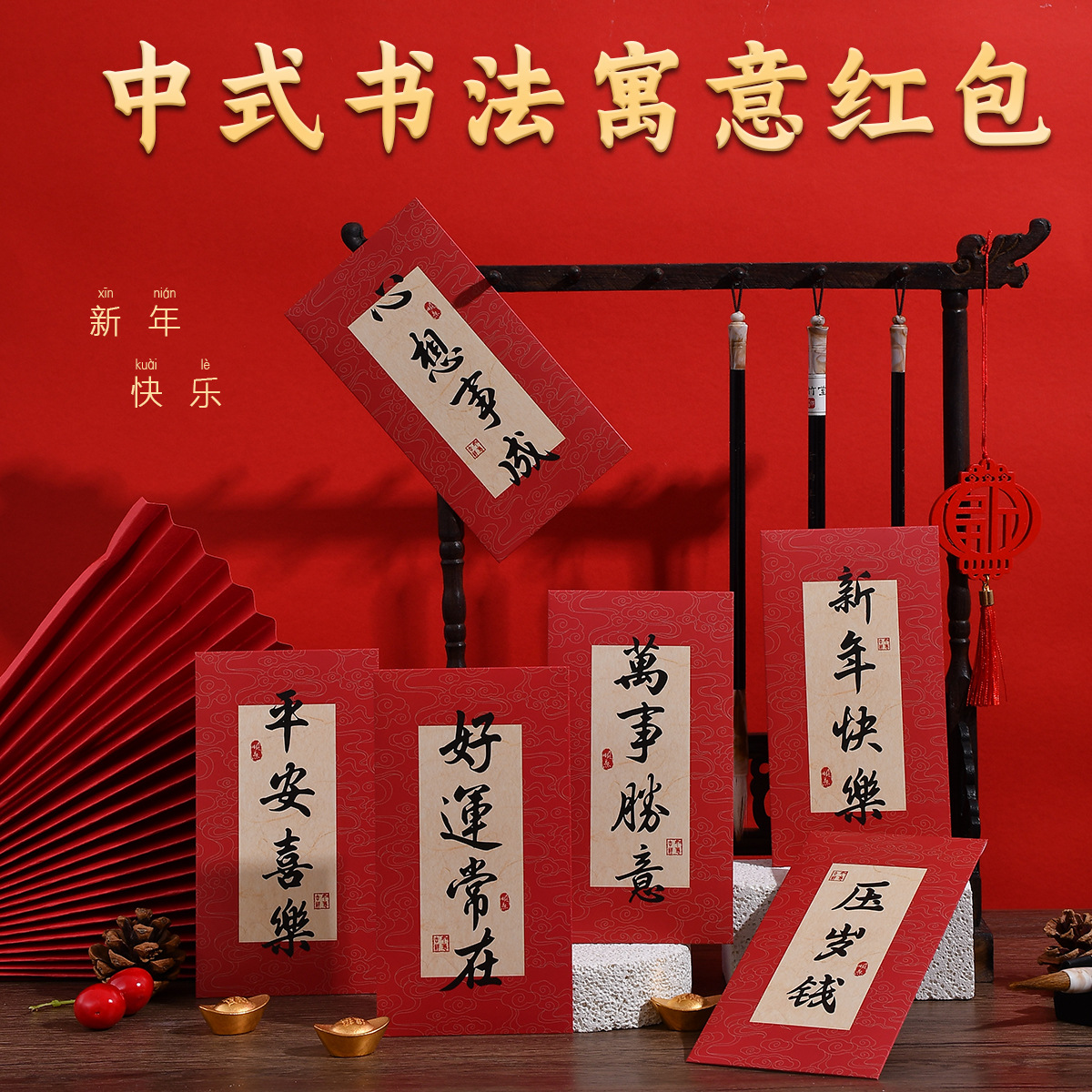 中国式書道封筒国風紅包カード新年祝福アイデア高級感書道封筒