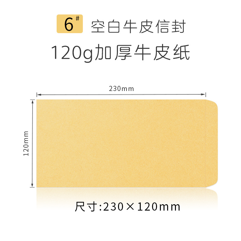 イエローブランク字無し6号120g厚手クラフト紙厚手インボイス封筒クラフト紙袋カスタム印刷製作