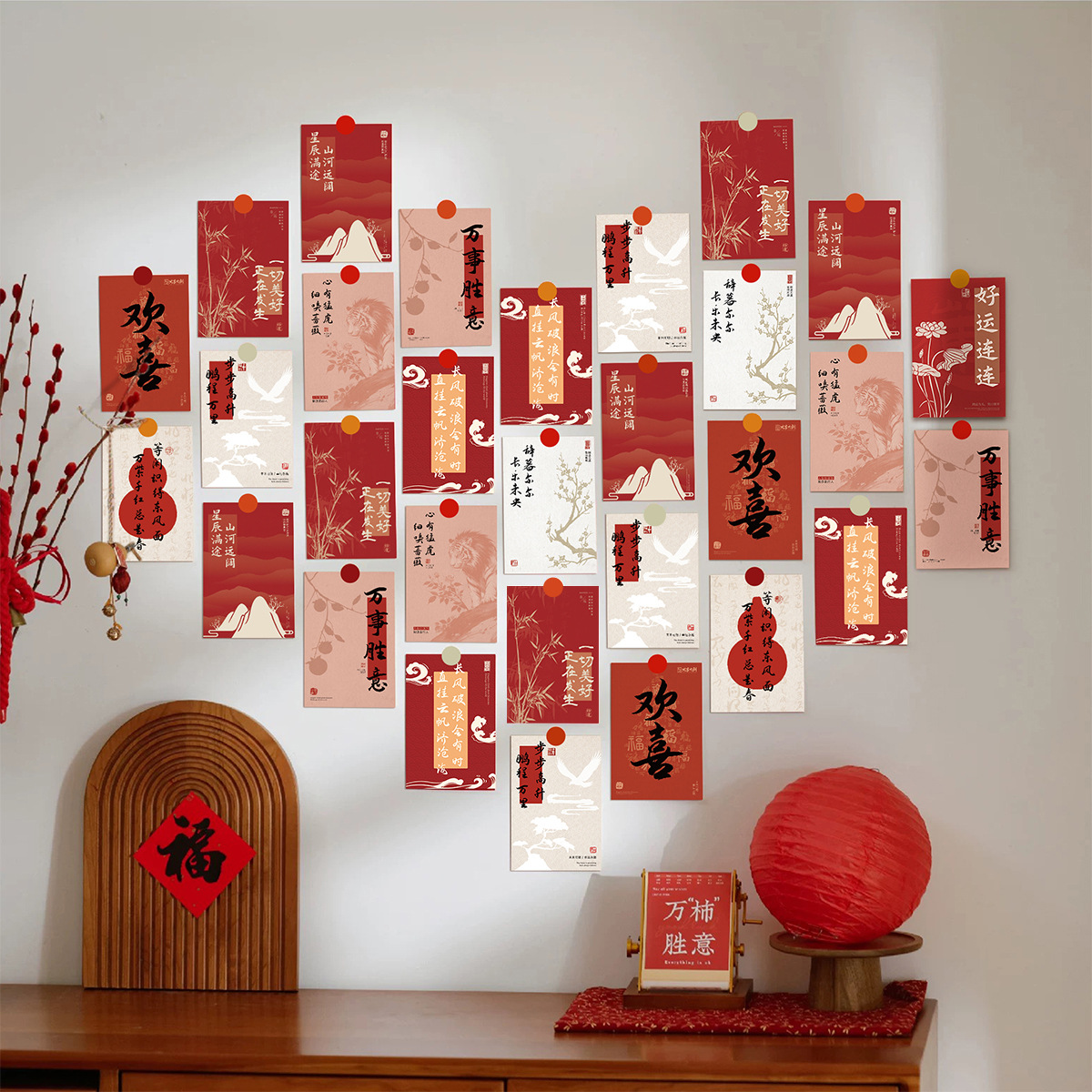 万事胜意中国式祝福文字カード装饰壁面グリーティングカード中国式美しい愿いはがきウォールステッカー