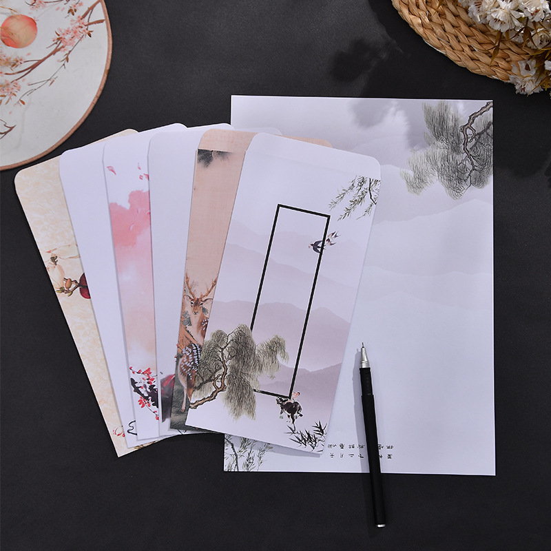 古風封筒封筒復古カラーラブレター封筒伝統水墨国風創意a4高級文芸便箋