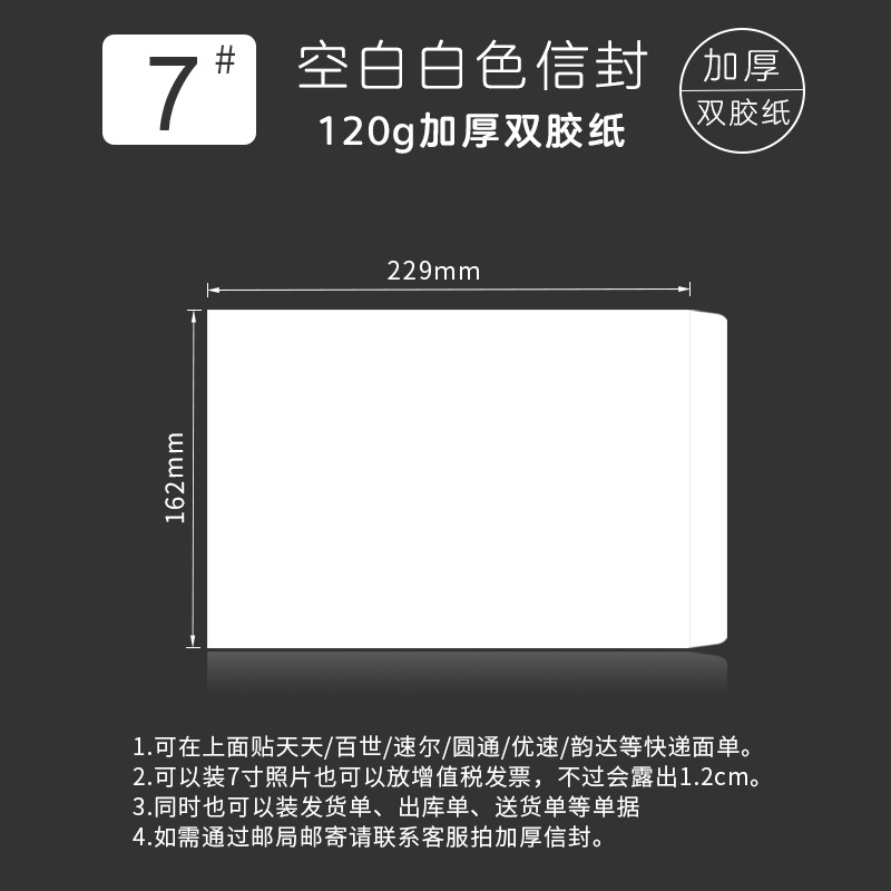 空白の無字白色7号120g二重テープの紙袋を厚くして封筒の便箋を作って印刷します。