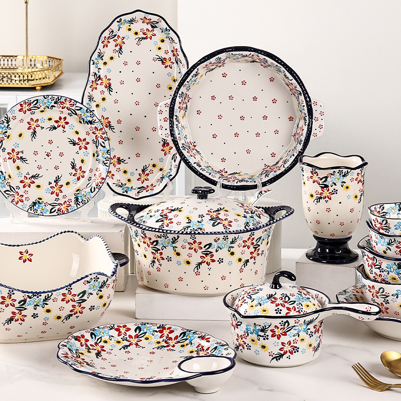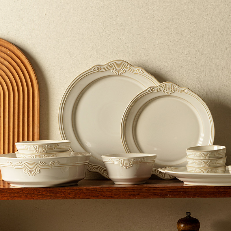 フレンチレトロ食器セットセラミック家庭用和風プレートプレートレリーフライスボウルスープボウル食器