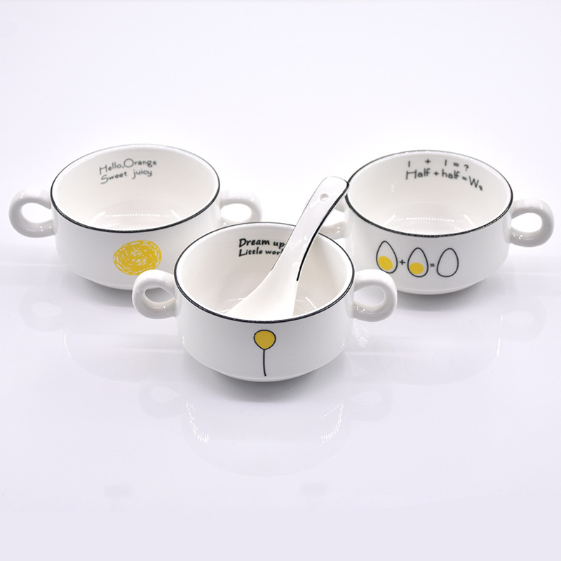 2025 新白セラミック両耳ボウルクリエイティブ西洋スープボウル商業朝食カップお粥デザート蒸し卵カップ家庭用