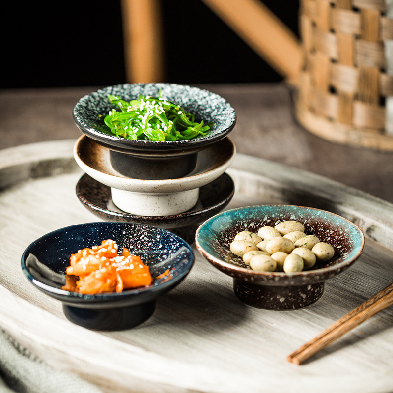 和風陶器皿、背の高いお茶皿、フルーツナッツスナック皿、小皿、スナック皿、調味料皿、食器皿