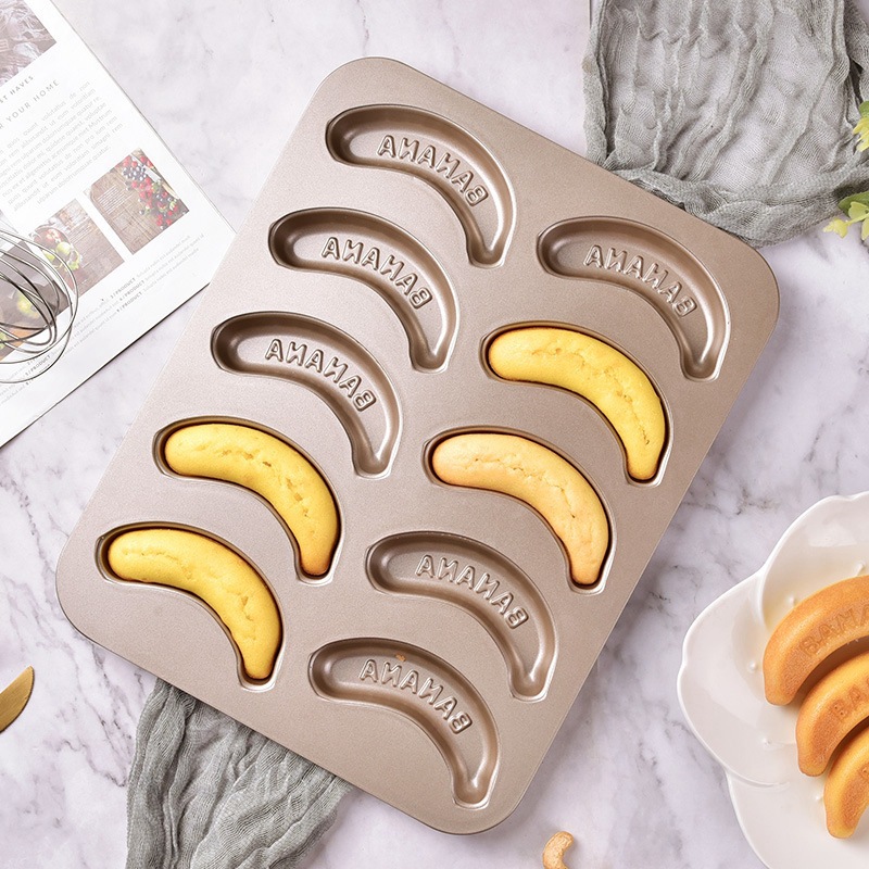 フレンチノンスティックバナナ型炭素鋼蒸しケーキプディングケーキノンスティックベーキングオーブンクリエイティブバナナベーキングパン付き