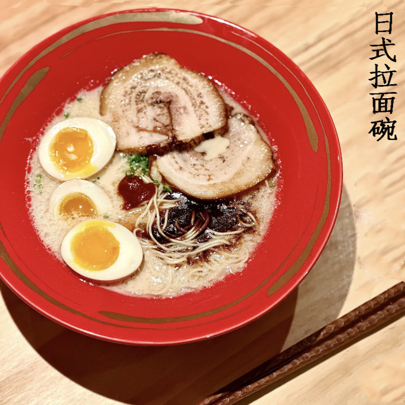 日本のラーメンボウル、クリエイティブな陶器食器、手描きの笠ボウル、背の高いトランペットボウル、金塗りの大きなボウル、ラーメン店のスープヌードルボウル