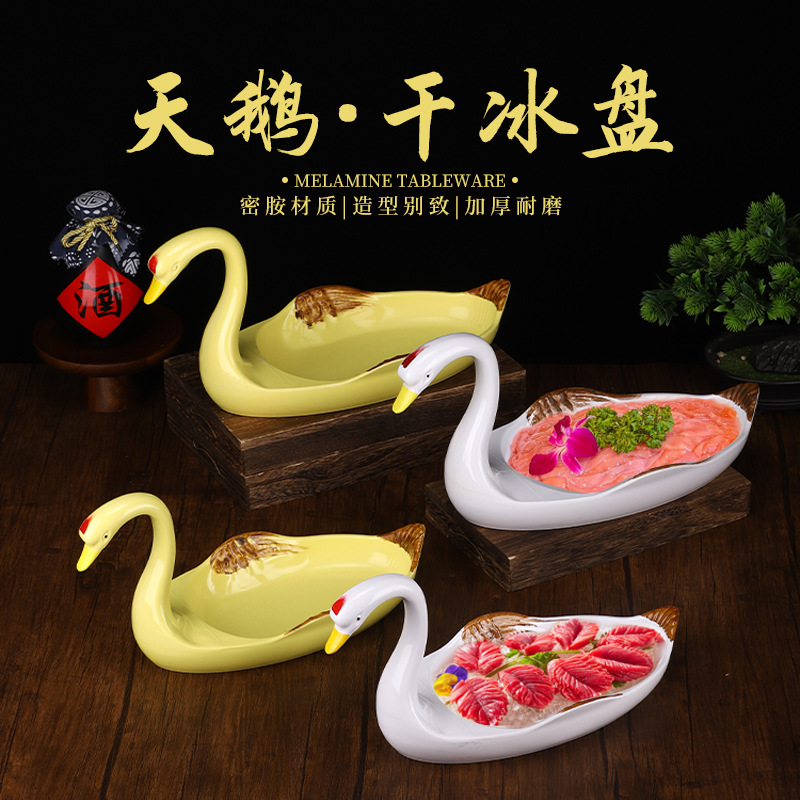 創作鍋専用食器 メラミン白鳥型プレート アイス 299.7cm グース腸 ドライアイスプレート 生鴨腸アイスプレート