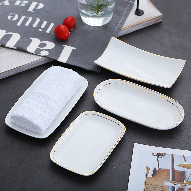 ゴールデンエッジセラミックタオルソープディッシュ純白楕円形長方形タオルホルダーホームウェットティッシュトレイタオルトレイ