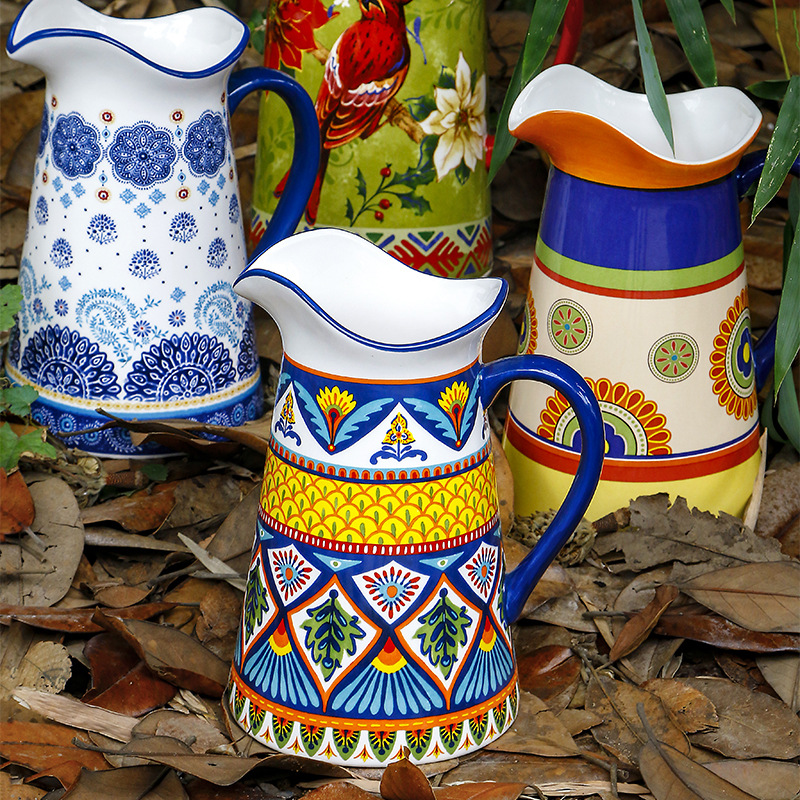 クリエイティブコールドケトルセラミックフラワーアレンジメント花瓶アメリカンアンダーグレーズカラー大容量水差しパーソナライズされた装飾装飾品