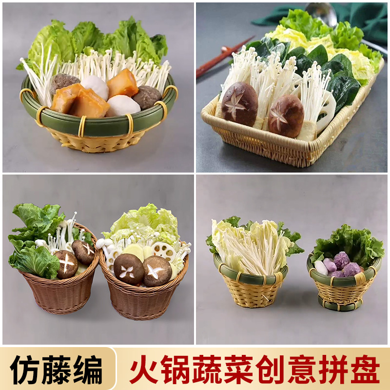 鍋野菜盛り合わせおかずプレート野菜レタスバケツ業務用創作食材バスケット模造籐野菜