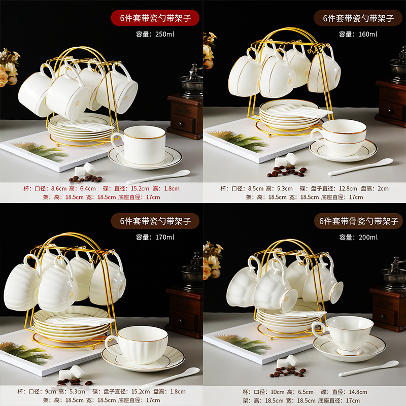 ボーンチャイナコーヒーカップセット英国アフタヌーンティー食器セラミックヨーロピアンスタイルカップとソーサー棚とスプーン付き