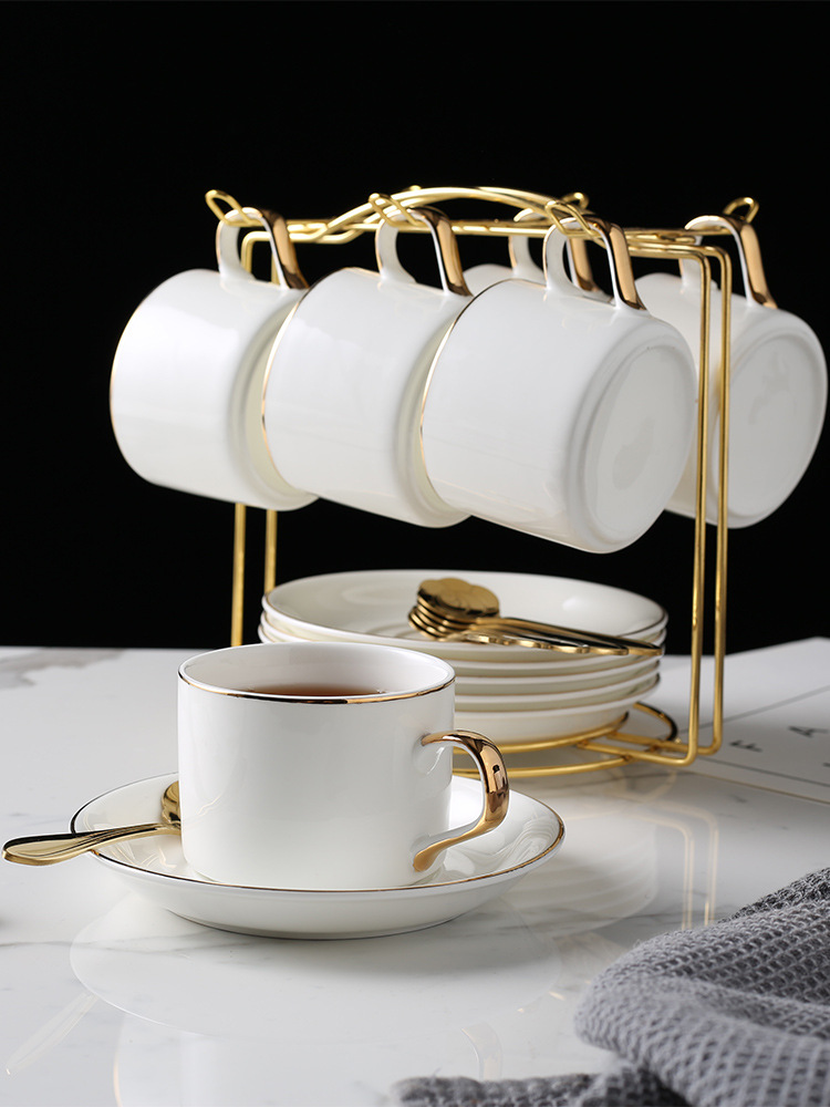 ヨーロピアンスタイルのセラミックコーヒーカップとソーサーセットライトラグジュアリースモールラグジュアリーアフタヌーンティーセットシンプルカップオフィス