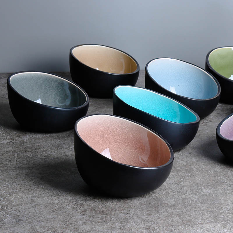 創意的な氷裂釉陶磁器の碗の家庭用の碗のご飯の碗のデザートの碗の食事の碗の斜めな口の碗の氷のひびの異形の碗