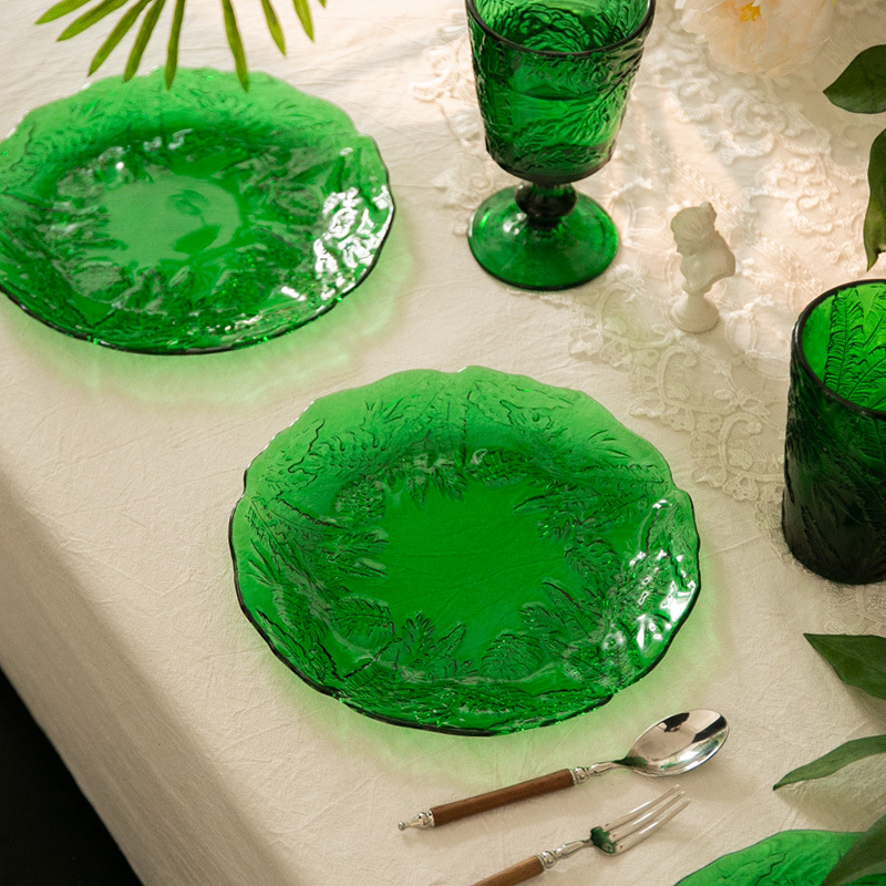 レトロなエンボス東アジアスタイルの熱帯雨林ガラスディナープレート家庭用デザート小皿コールドディッシュプレート家庭用