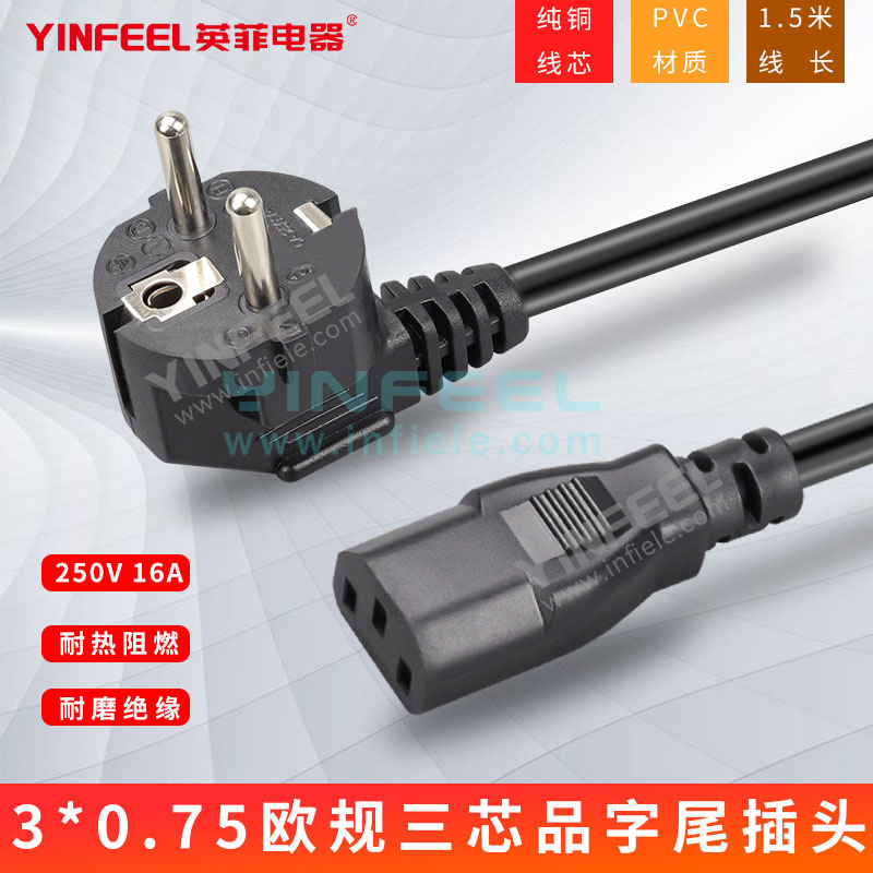 フランス三芯電源コードプラグ法規付フランスヨーロッパac純銅電源コード16a250v