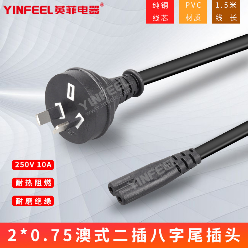1.5メートル純銅オーストラリア標準二プラグ電源コードオーストラリア標準八字尾二プラグアダプタ二芯電源コード