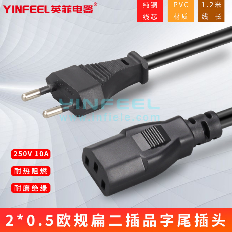 ヨーロッパの2円2芯電源コードヨーロッパ規格ヨーロッパの標準ヨーロッパ式のケースの2つのプラグインの字の尾のドイツ式のコンピュータの電源コード