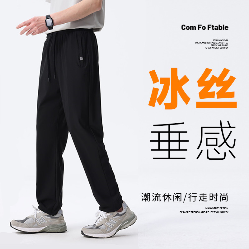 氷糸速乾ズボン男性夏の薄いタイプのワイドパンツのファッションブランド男性のストレート男性のズボンのゆったりとしたカジュアルなズボン