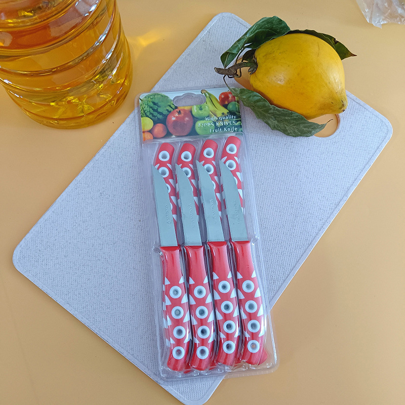 陽江ステンレスフルーツナイフ12本セット、両面吸着カード付き、果物皮むきナイフ、カラフルなプラスチックハンドル、4穴ナイフ、外貿向け