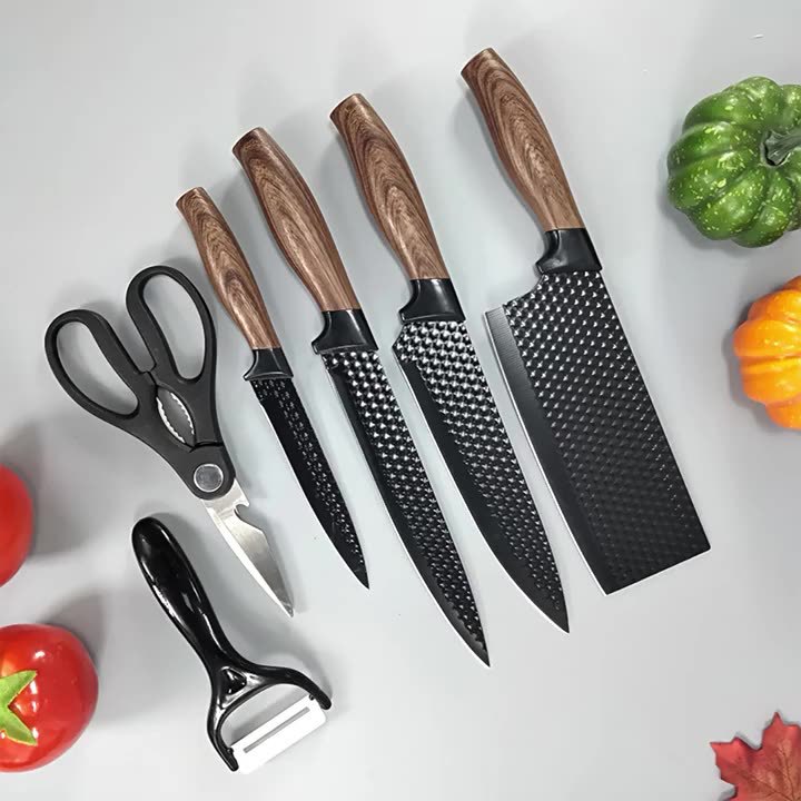 クロスボーダー現物ダイヤモンド紋六点セットナイフ西洋式抗菌ノンスティックナイフ黒木目柄キッチンナイフ