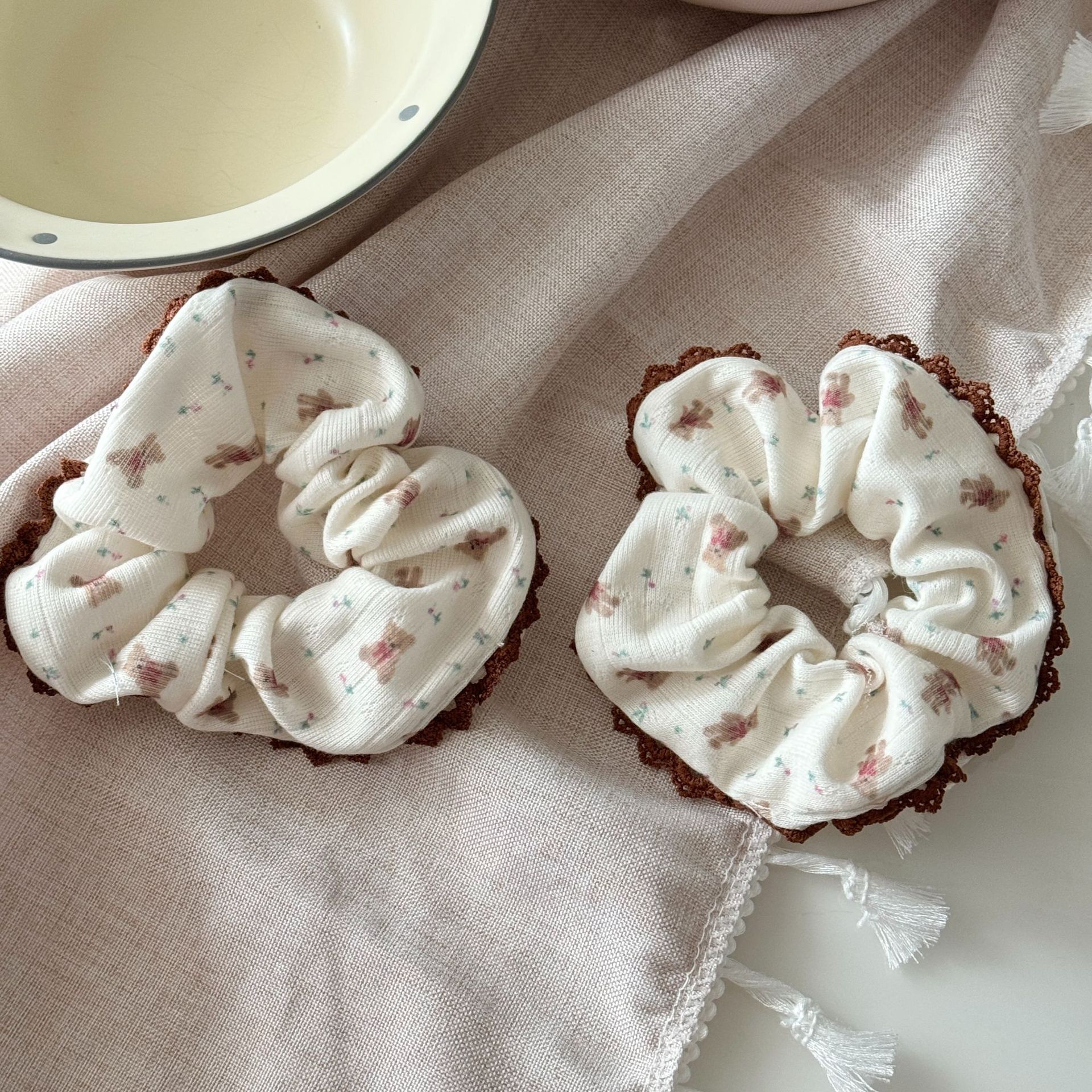 かわいいクリームの熊の髪輪のレースの少女の大きい腸輪のフランスの綿の布の馬尾の団子の髪のひもの超仙の髪飾り