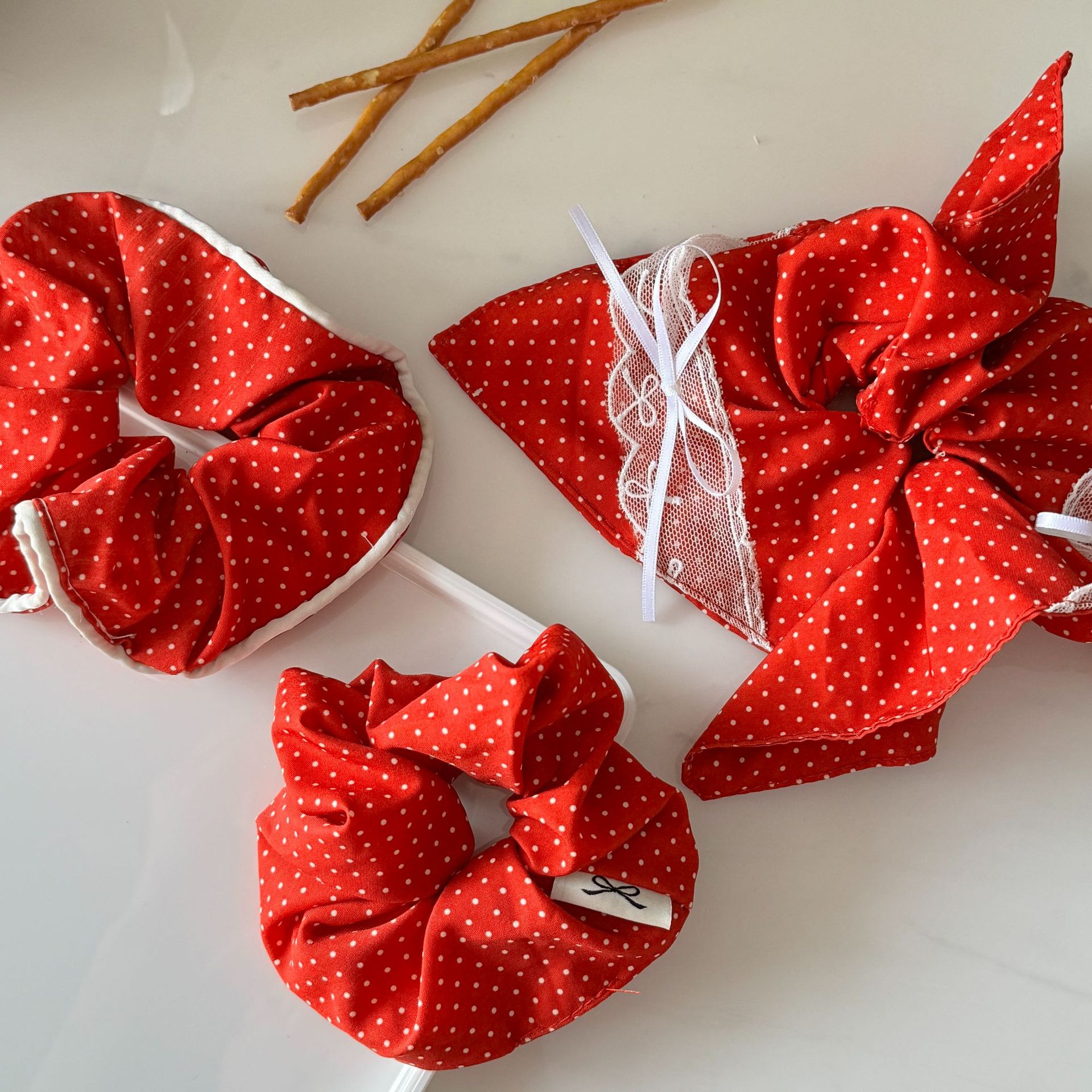 赤い布芸波点大腸髪輪韓系高颜値角巾髪輪百合髪飾り馬尾髪ひも女