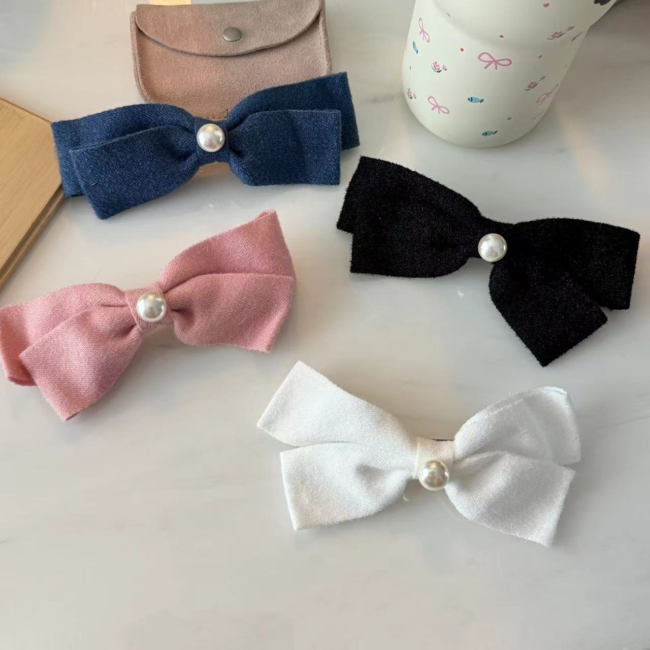 韓国ins風ヘアクリップ布芸秋冬気質真珠蝶結びバネクリップレトロ高級感トップクリップ
