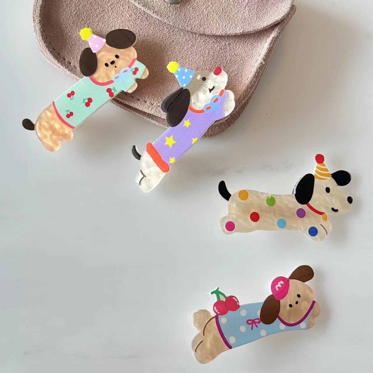 誕生日の子犬のクリップのアクリルの少女のかわいい髪のクリップの前の額の側は髪を砕いて前髪を挟んで子供の頭飾りを挟みます。