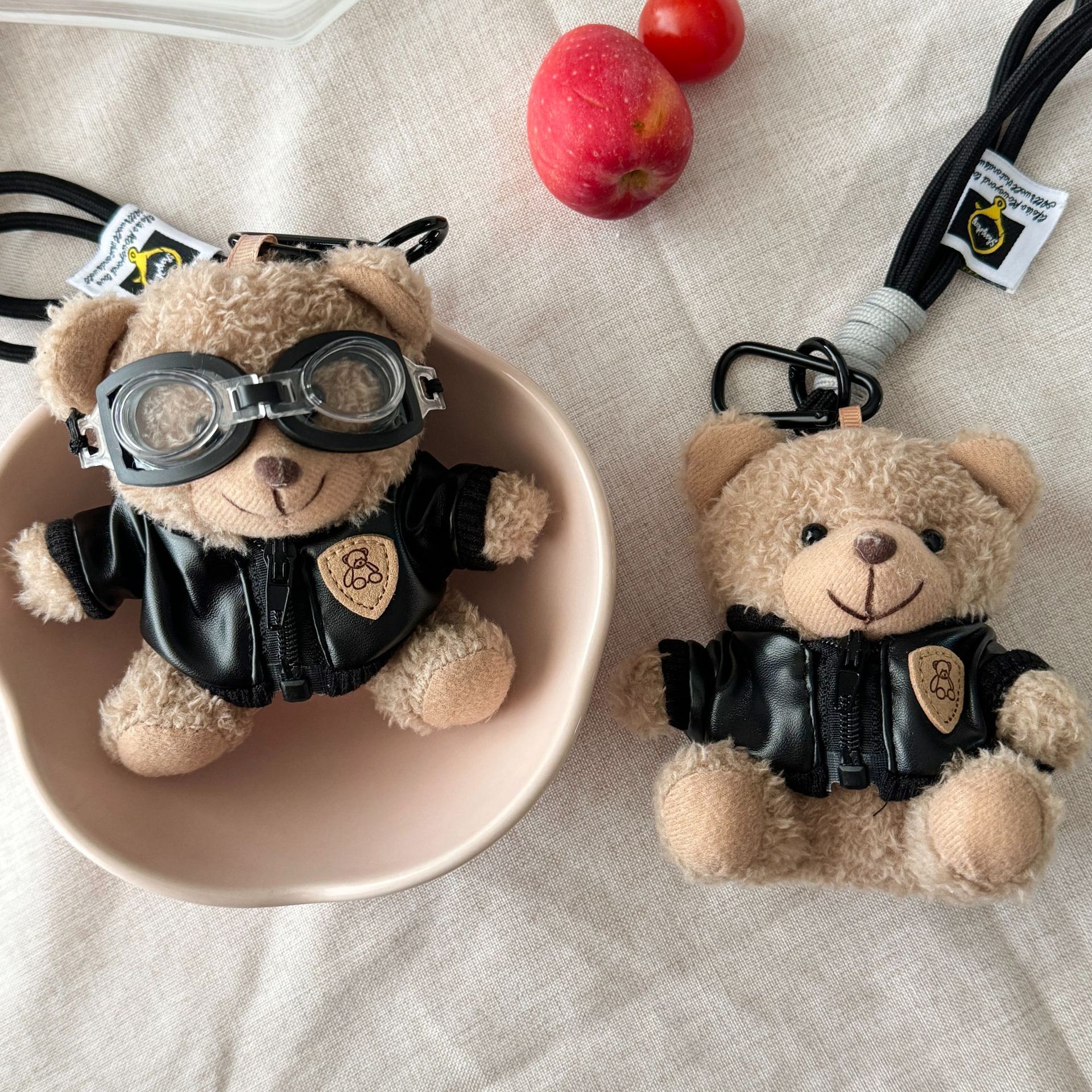 ルースの同じ革の服の熊のペンダントのキーホルダーの革のジャケットの熊の秋冬の新型のパイロットのぬいぐるみの人形のぬいぐるみ