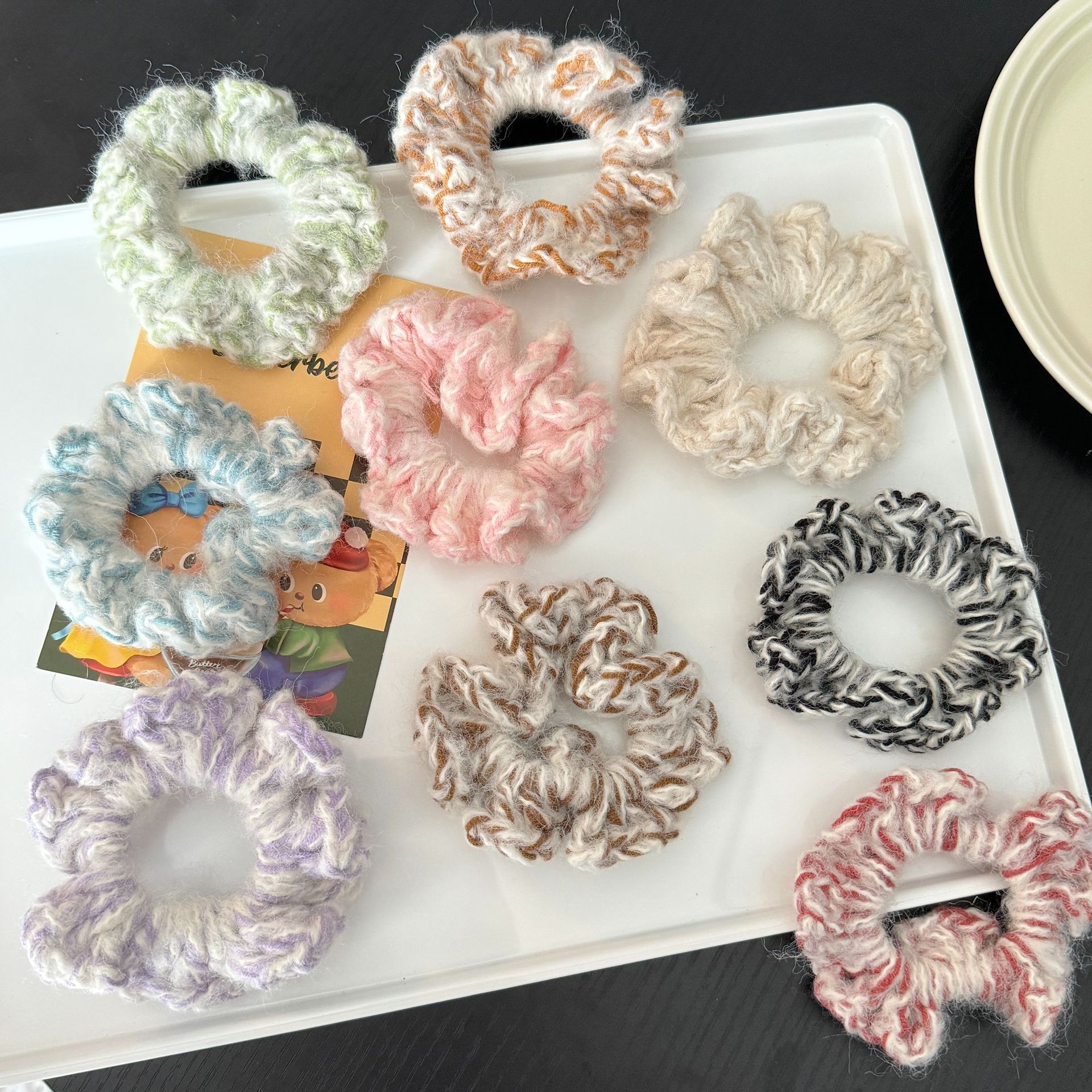 毛糸秋冬髪輪韓系百合ins風暖色系髪紐2024カラー髪飾り少女馬尾髪飾り