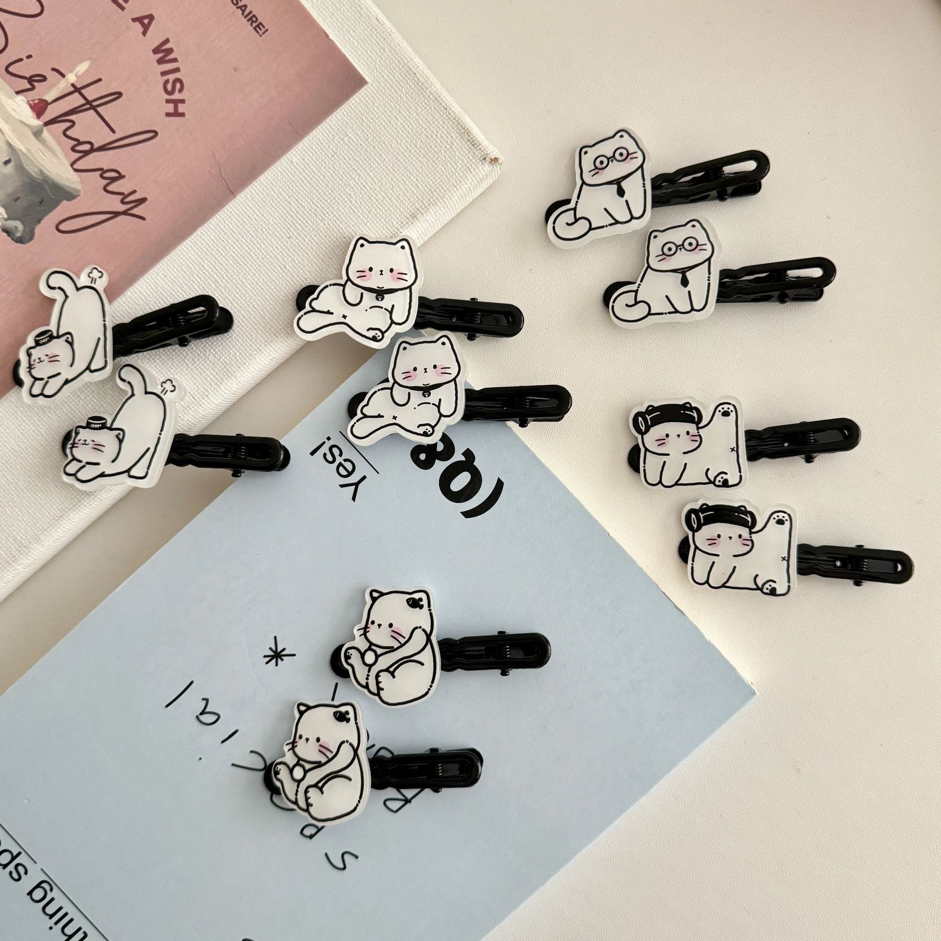 Y 2k漫画の子猫のヘアピンの銀色のアクリルの学生はサイドを挟んでアイデアを作ります。