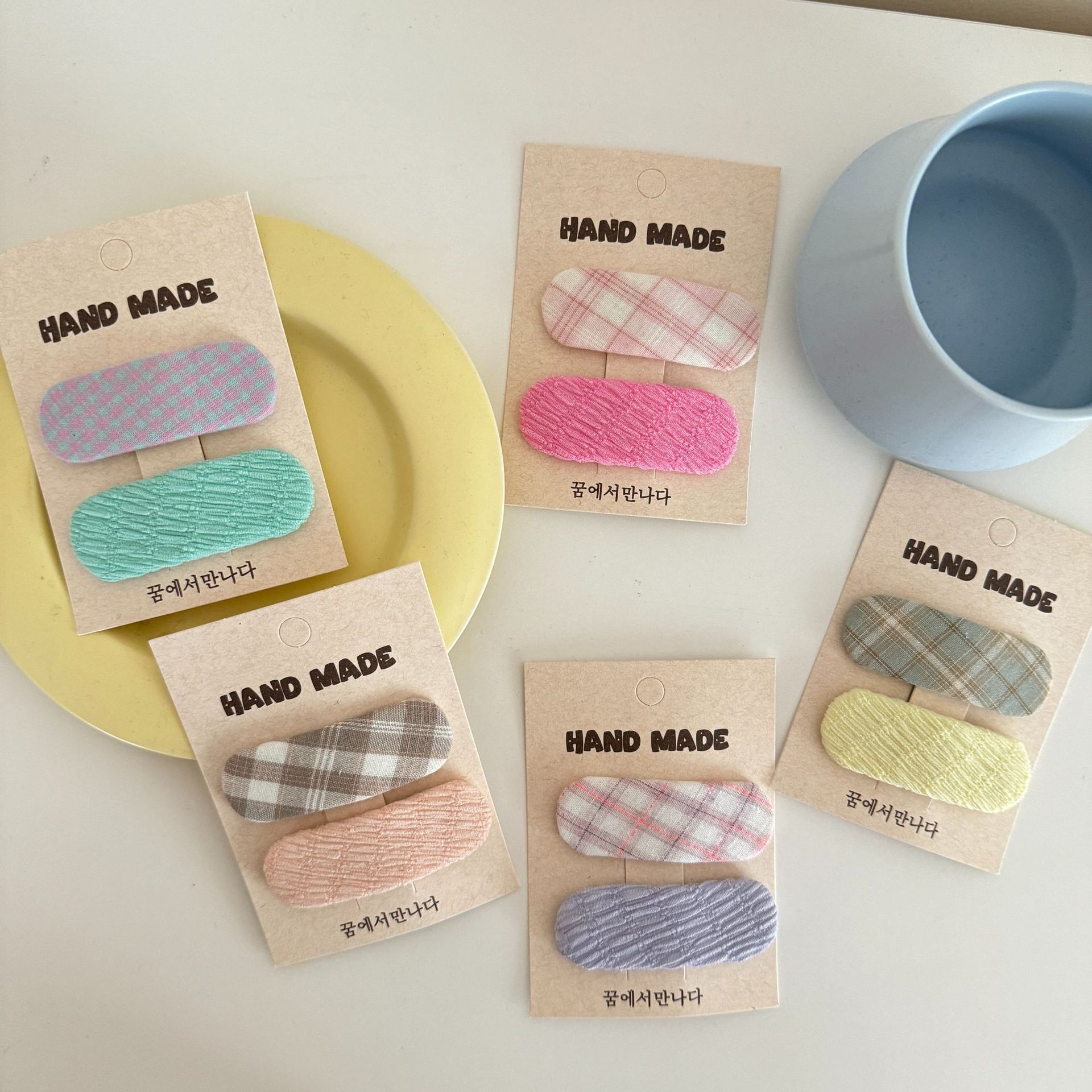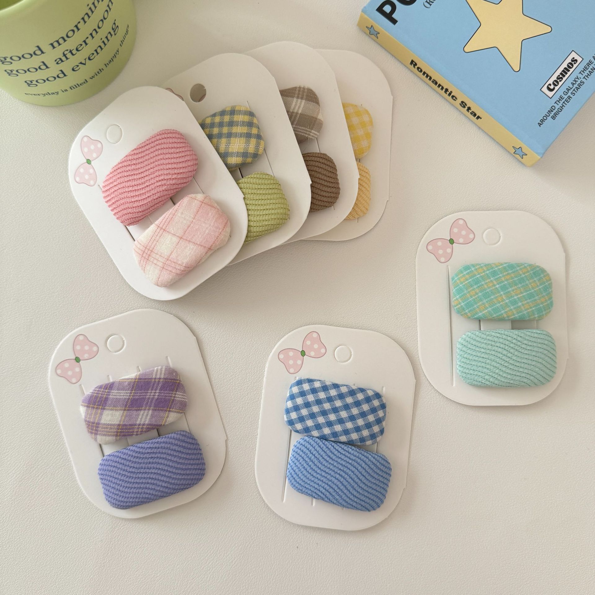 2個入り少女bbクリップ前髪クリップカラーキルト小清新楕円bbクリップ頭飾り韓国系少女心髪飾り