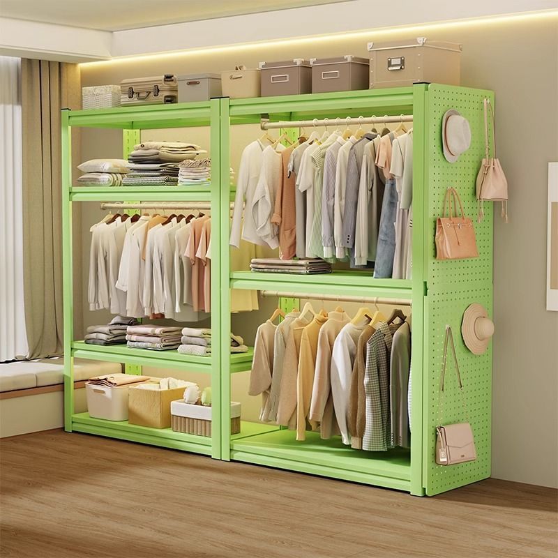 ホームベッドルームスチールハンガーワードローブ収納収納ラックオープン多層コートラックフロアスタンド棚