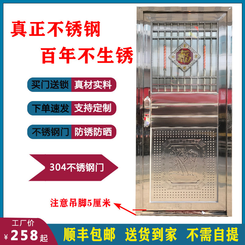 304 ステンレス鋼のドアシングルドア農村玄関ドア玄関ドア賃貸住宅の屋上ドア肥厚モデル