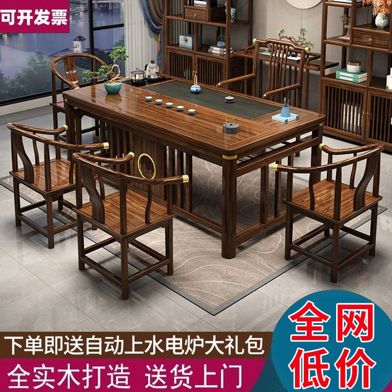 新しい中国風の無垢材のティーテーブルと椅子の組み合わせ、家庭用ティーテーブル、小さなアパートのコーヒーテーブル、禅のティーテーブルの完全なセット