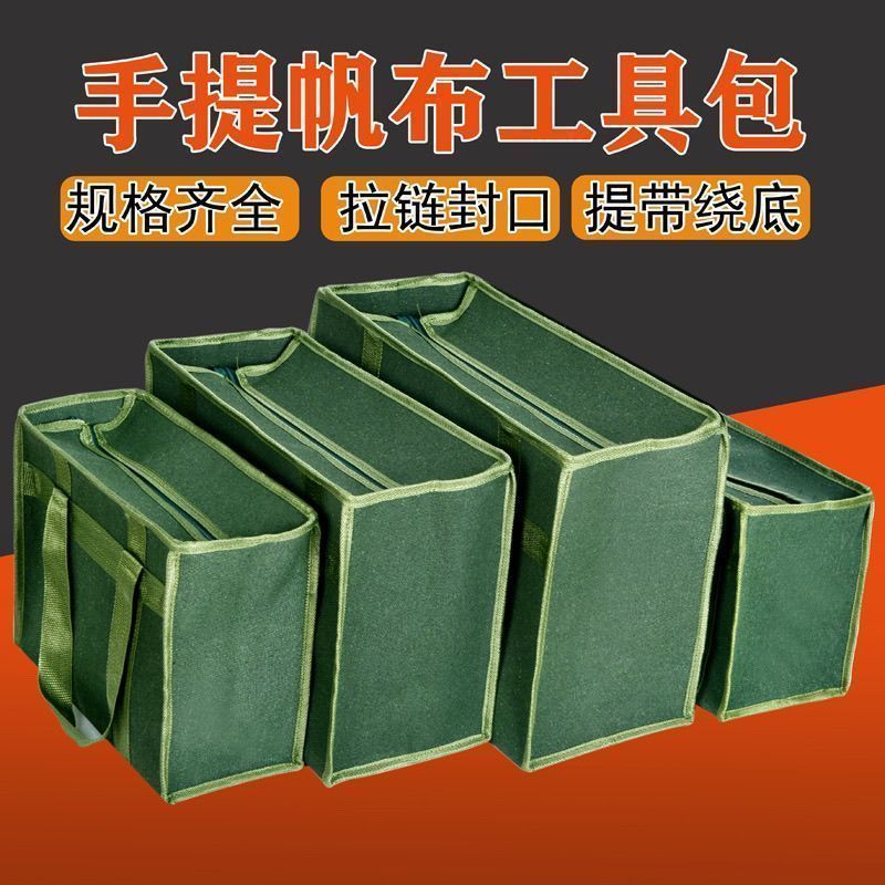 厚手のキャンバス大容量スプリットジッパーポータブルツール収納袋キャンバスツールバッグスクエアキャンバス