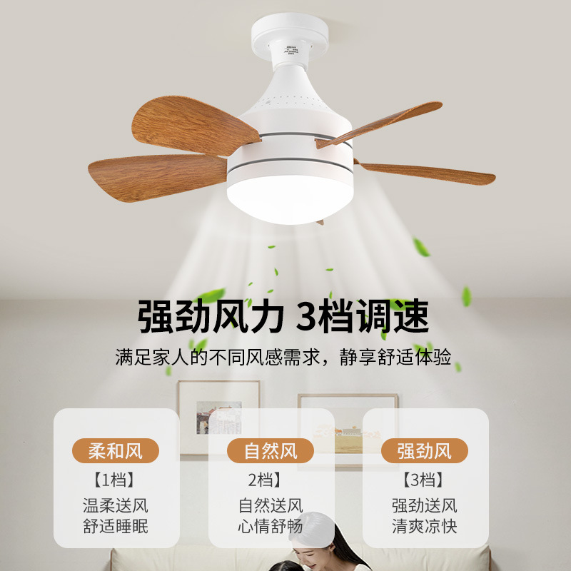 国境を越えた現代レストラン原木風扇風機灯大風力超静音e 27取り外し可能な食堂灯扇一体0