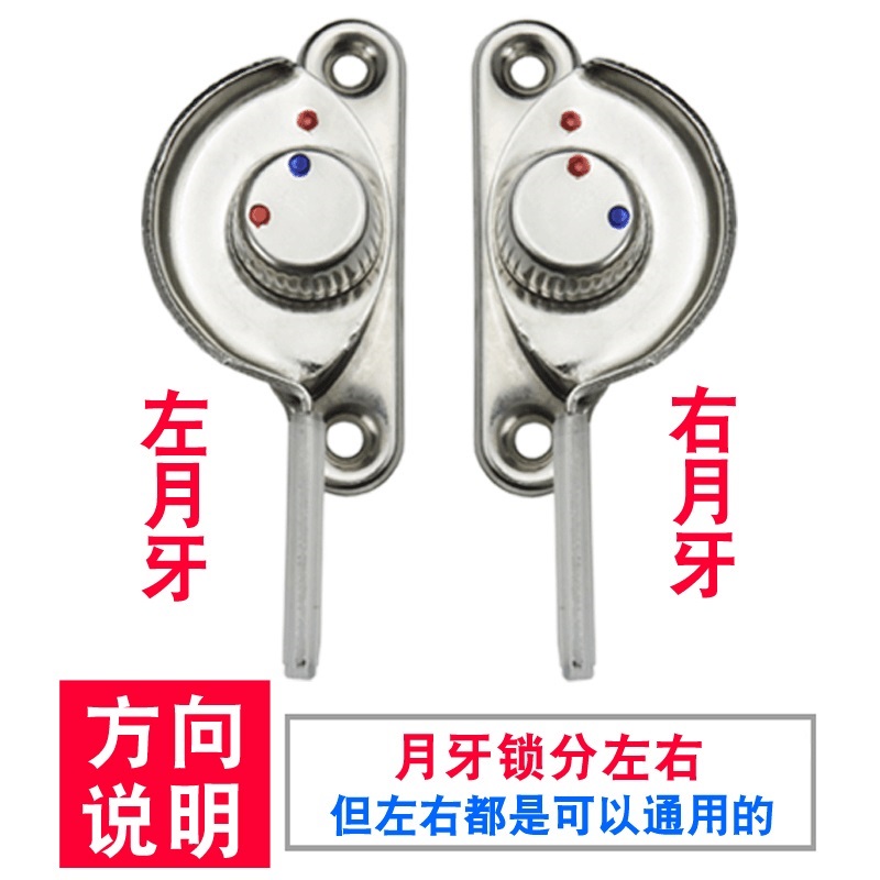 ステンレス製三日月錠押し引き窓錠40穴距離50アルミニウム合金90保険付き児童ドアロックフック
