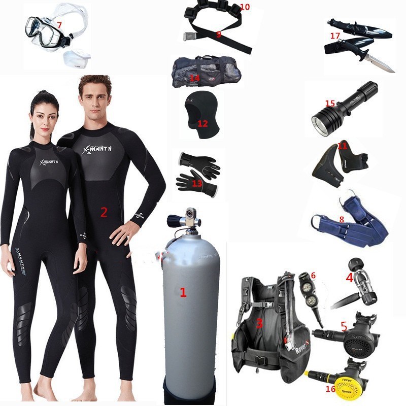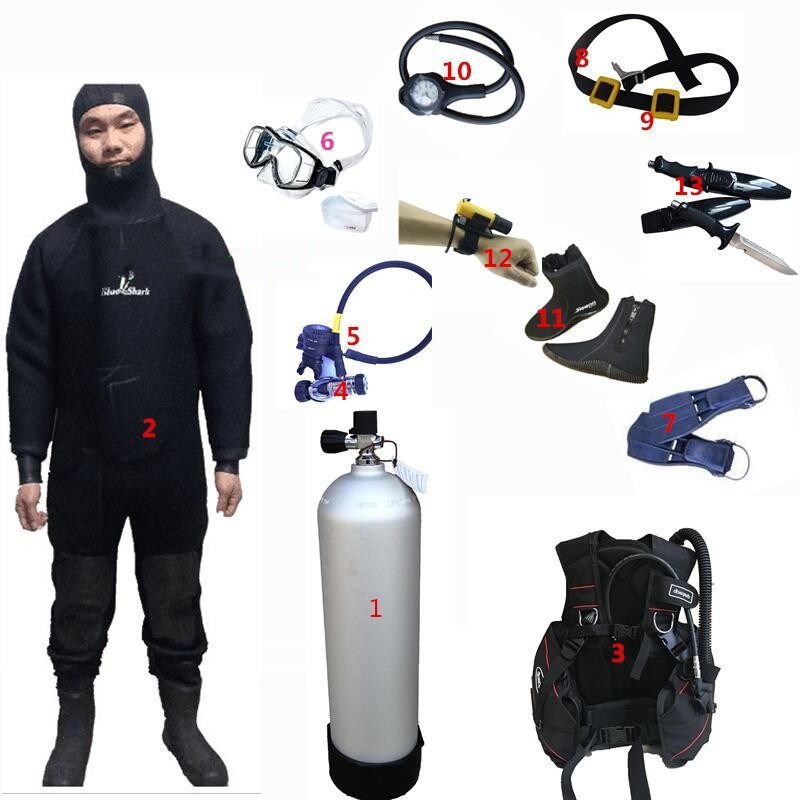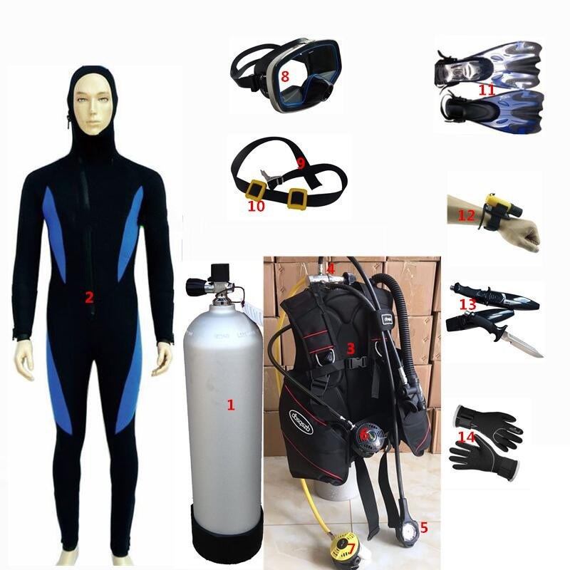 乾式潜水服セット全乾式潜水服セット潜水装備ガスボンベ圧力計水肺深潜装備