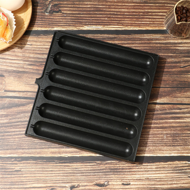 6管の焼き腸の皿の道端の露店の商用の脆い皮のデンプンの腸の焼き腸の皿の夜市は露店のカード式の炉の鋳型のアルミニウム合金を並べます。