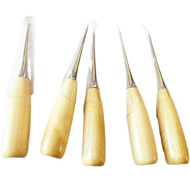 手作り皮革工具丸穴実木柄錐直フック錐diy手作り針椎工具