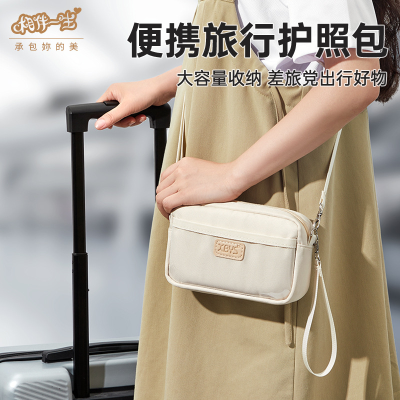 生涯にわたる斜めストラップパスポートバッグ無地多機能ドキュメントバッグポータブルチケット携帯電話ショルダーバッグ