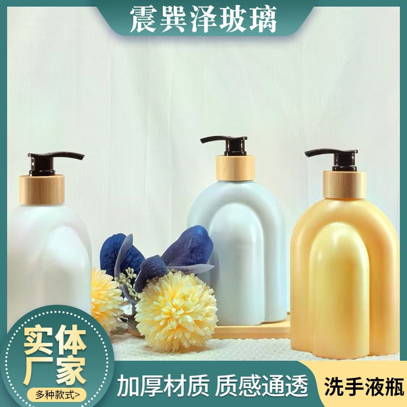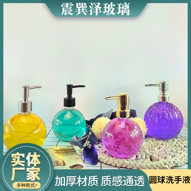 手洗い液を押して厚いガラス瓶メーカー卸売り石けん液分注瓶シャンプー入浴剤手洗い液瓶