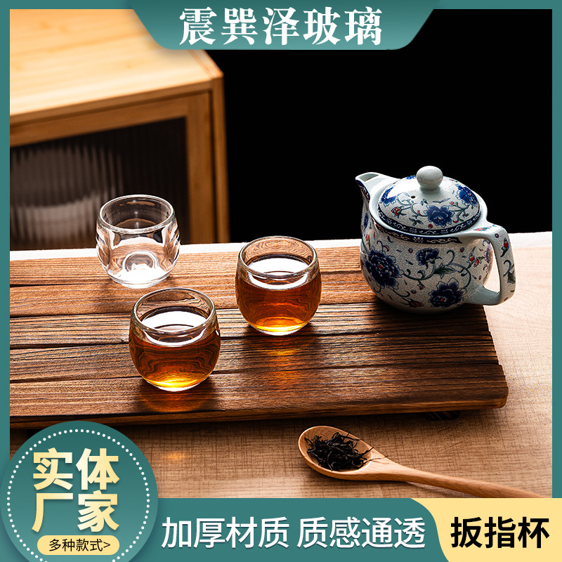 透明なガラスのティーカップ、フィンガーカップ、小さなワイングラス、クリスタルガラスのウォーターカップ、健康維持の中国茶カップ、厚みのあるフィンガーカップ