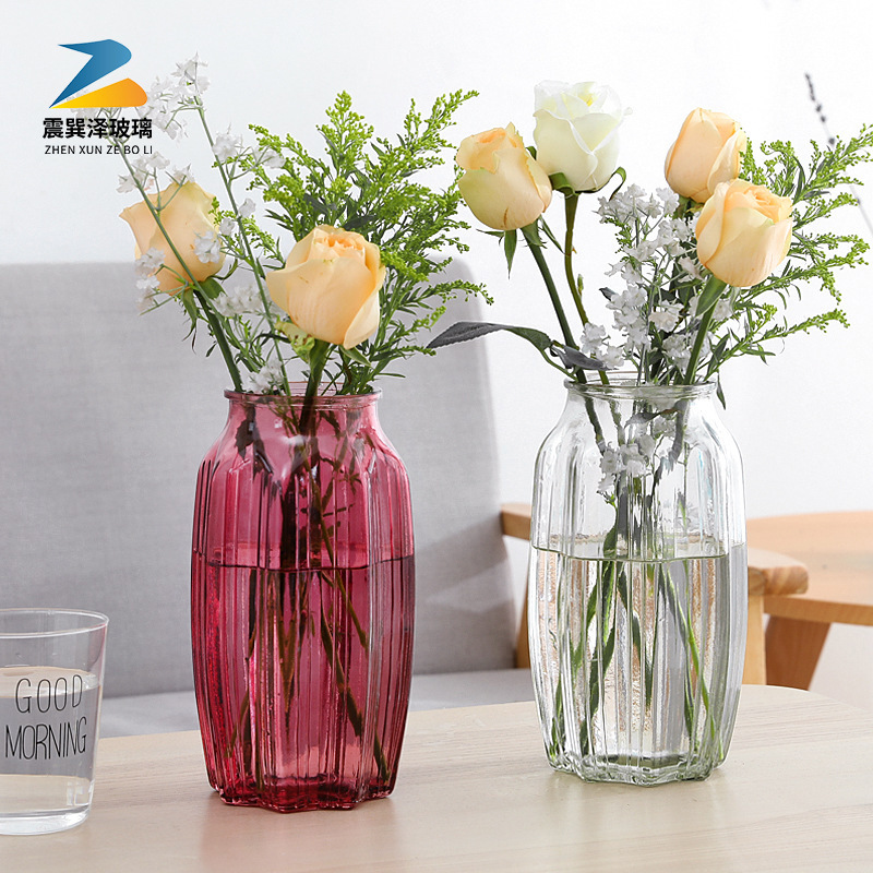 モダンなシンプルなカラーのアイデア縦稜ガラス花瓶生花生け花水培花器ファッションリビング装飾置物
