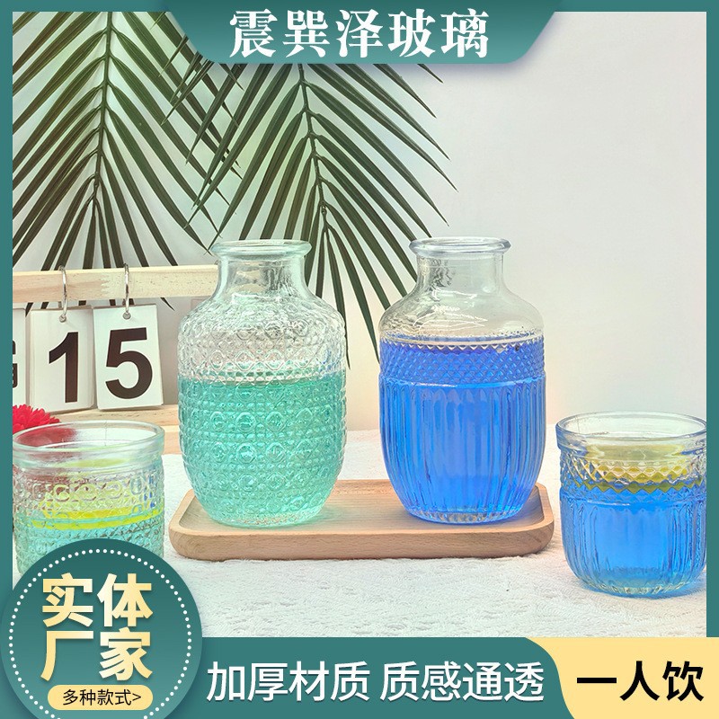 定制玻璃杯一人饮杯瓶套装大容量玻璃水壶壶杯套装复古浮雕玻璃杯