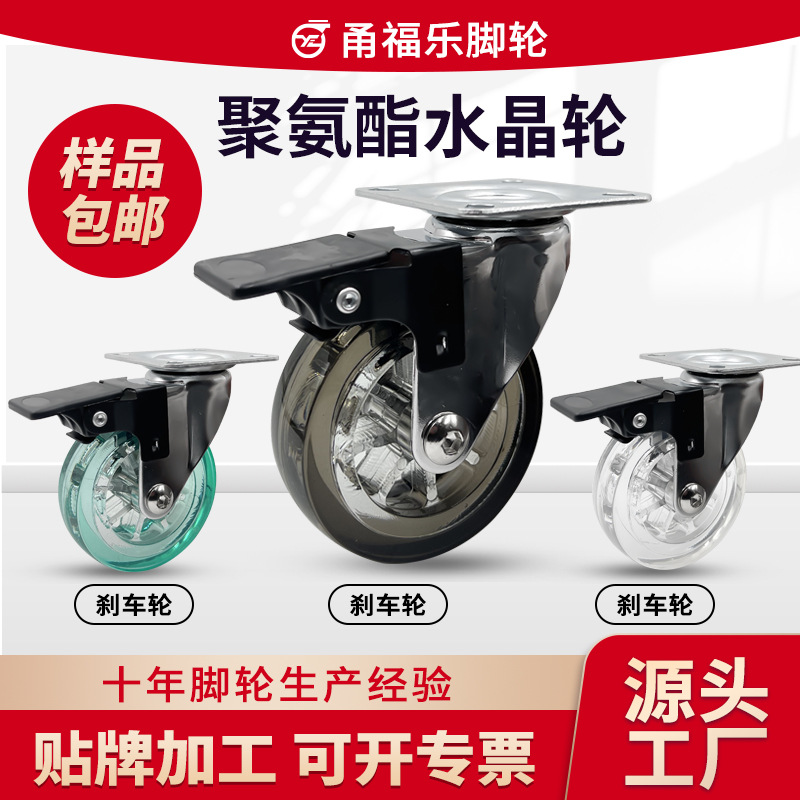 カスタム1.5インチ2インチ3インチ透明ポリウレタン静音ユニバーサルホイール家具ホイールカートブレーキ付きクリスタルキャスター